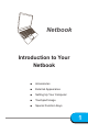 Netbook Introduction to Your Netbook ■ Accessories ■ External Appearance ■ Setting Up Your Computer ■ Touchpad Usage ■ Special Function Keys 1