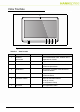 Vista frontale 0 1 53 7 62 Figura 7. Tabella 1. N. 46 35 24 Vista frontale Vista frontale Voce Icona Descrizione 1 Obiettivo fotocamera Per comunicazione video, scatto di foto o registrazione di video. 2 Tasto Volume Regolazione del livello del volume. 3 Tasto Indietro Se premuto, consente di tornare alla schermata precedente. 4 Tasto Menu Se premuto, consente di visualizzare la schermata attuale. 5 Tasto Home Se premuto, consente di visualizzare la schermata Home.