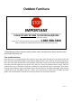 Outdoor Furniture IMPORTANT If you have any problems with this product (missing or damaged parts, assembly issues, etc.), PLEASE DO NOT RETURN TO THE RETAILER/STORE from where you purchased the product. Please call our Toll-Free Customer Service Hotline at: 1-866-988-3300 Between 8:00 AM and 5:00 PM Pacific Standard Time, Monday through Friday To expedite any future warranty claims, please retain the instruction sheet, warranty card and receipt for future use.