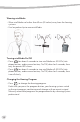 Wearing miniMedia • Wear miniMedia no further than 60 cm (24 inches) away from the hearing systems. • Use lanyard or clip to wear miniMedia. 1 2 Turning miniMedia On/Off • Press for about 3 seconds to turn miniMedia on. All LEDs (telephone button, audio source button, On/Off) shine for 3 seconds, then only the power LED shines. for about 3 seconds to turn miniMedia off. All LEDs (tele• Press phone button, audio source button, On/Off) shine for 3 seconds, then turn off slowly.
