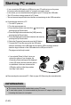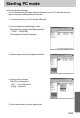 Starting PC mode • If you connect the USB cable to a USB port on your PC and then turn on the power, the camera will automatically switch to "computer connection mode". • In this mode, you can download stored images to your PC through the USB cable. • The LCD monitor is always turned off in PC mode. • The card access lamp will blink when the files are transferring via the USB connection. ■ Connecting the camera to a PC 1. Turn the PC power on. 2. Turn the camera power on. 3.