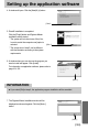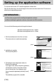 Setting up the application software To use this camera with a PC, install the application software first. After this has been done, the stored images in the camera can be moved to the PC and can be edited by an image editing program. INFORMATION ● Close other programs before installing the application software. ● Before installing the application software, disconnect the USB connection. You can visit the Samsung web-site through the internet. http://www.samsungcamera.com : English http://www.