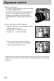 Exposure control ■ Exposure lock This camera automatically adjusts the exposure according to the ambient lighting conditions. You can change the exposure value manually by using the AE-L (Auto Exposure Lock) button in a lighting condition where there are exposure differences between a subject and background. ● How to set the Exposure Value Compensation 1. Ensure the subject in the centre of the auto focus frame. 2. Move the focus frame to a subject that has desired exposure value. 3.