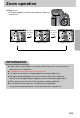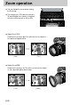Zoom operation ■ You can change the zoom rate by rotating the Zoom ring. ● This camera has a 15X optical zoom and a 2X and 4X digital zoom function. Using both will offer a total zoom ratio of 30X or 60X. ● Optical Zoom TELE Rotate the Zoom ring to right. This will zoom into the subject i.e. the subject will appear nearer. 25 28 25 110 [ Tele ] [ Wide ] ● Optical Zoom WIDE Rotate the Zoom ring to left. This will zoom out from the subject i.e. the subject will appear further away.