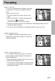 Focusing ● MF : Manual Focus Where the automatic focusing is not available, for example, in very dark conditions, use the manual focus. Please be careful when using the manual focus as the picture can be blurred easily. ※ When you use the manual focus, the centre of the LCD is enlarged. ※ This function will not be available in the auto recording and scene modes. ● How to set the direct MF in the Program mode You can change the focus even though the camera is focused on a subject by rotating the focus ring.