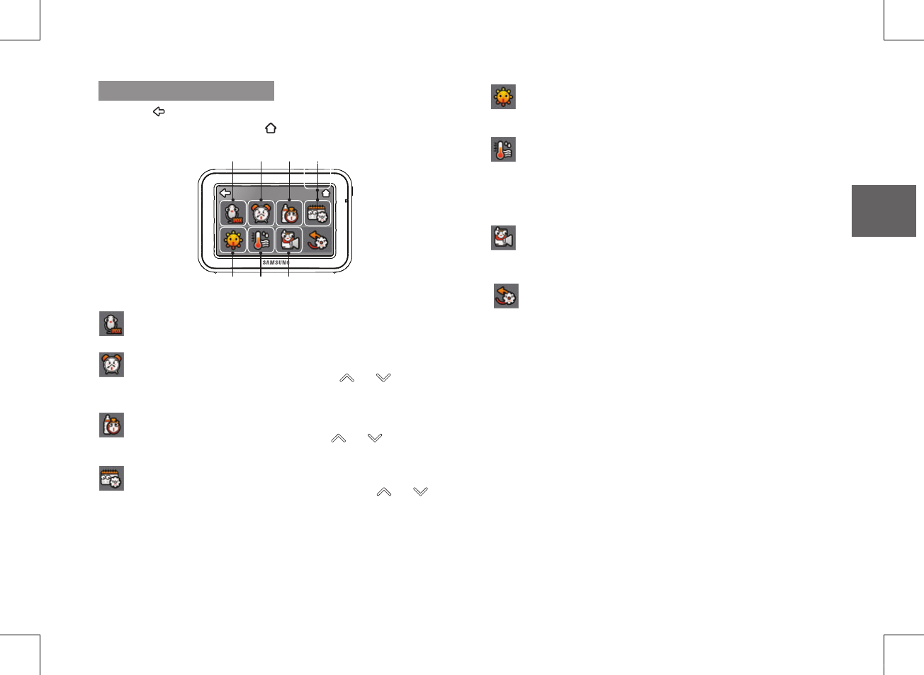 Set the feed time shown on the monitor. Use the [ ] or [ ] icon to change