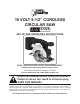 8 Volt 5-1/2” Cordless Circular saw 67026 Set up and Operating Instructions Note: Battery PACK (67029) sold separately. Distributed exclusively by Harbor Freight Tools®. 3491 Mission Oaks Blvd., Camarillo, CA 93011 Visit our website at: http://www.harborfreight.com Read this material before using this product. Failure to do so can result in serious injury. Save this manual. Copyright© 2009 by Harbor Freight Tools®. All rights reserved.
