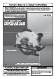 Circular Saw Safety Warnings (continued) SAFETY 12. Lower guard should be retracted manually only for special cuts such as ″plunge cuts″ and ″compound cuts.″ Raise lower guard by retracting handle and as soon as blade enters the material, the lower guard must be released. For all other sawing, the lower guard should operate automatically. 13. Always observe that the lower guard is covering the blade before placing saw down on bench or floor.