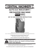 Auto A/C Recovery / Recharge Machine Model 95951 Set up And Operating Instructions Diagrams within this manual may not be drawn proportionally. Due to continuing improvements, actual product may differ slightly from the product described herein. Distributed exclusively by Harbor Freight Tools®. 3491 Mission Oaks Blvd., Camarillo, CA 93011 Visit our website at: http://www.harborfreight.com Read this material before using this product. Failure to do so can result in serious injury. Save this manual.