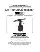 AIR HYDRAULIC RIVETER 167 ASSEMBLY AND OPERATING INSTRUCTIONS Due to continuing improvements, actual product may differ slightly from the product described herein. ® 3491 Mission Oaks Blvd., Camarillo, CA 93011 Visit our Web site at: http://www.harborfreight.com TO PREVENT SERIOUS INJURY, READ AND UNDERSTAND ALL WARNINGS AND INSTRUCTIONS BEFORE USE. Copyright © 2005 by Harbor Freight Tools®. All rights reserved.