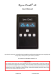 Sync-One2® v2 User Manual Sync-One2 is an easy to use hand held tool suitable for professional and amateur users to quickly and easily analyse audio/visual synchronisation problems. This manual is for Firmware release v2.1.x ! IMPORTANT ! To obtain the best results the use of supplied test files is recommended. These files consist of very brief flashes of light and sound beeps. As these flashes are brief and intense they may be perceived as stroboscopic lights.