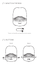 / NL 1. VERPAKKINGSINHOUD 2. KNOPPEN: VOORKANT; ACHTERKANT 3. AANSLUITINGEN 4. BLUETOOTH® KOPPELEN 5. VERLICHTING AAN/UIT • Bluetooth versie: 4.2 • Ondersteunt: A2DP 1.3, AVRCP 1.