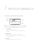 / PRODUKTÜBERSICHT Frontplatte und Deckplatte der Soundbar 1 2 4 3 1. + / - (Lautstärke) • Passen Sie die Lautstärke an. • Zum Stummschalten der Soundbar beide gleichzeitig drücken. 2. (Netzschalter) • Schalten Sie hier das Gerät ein oder auf Standby. • Zum Zurücksetzen der Wi-Fi-Einstellungen 5 Sekunden lang gedrückt halten. 3. Anzeigefeld • Zeigen den aktuellen Modus und Status an.
