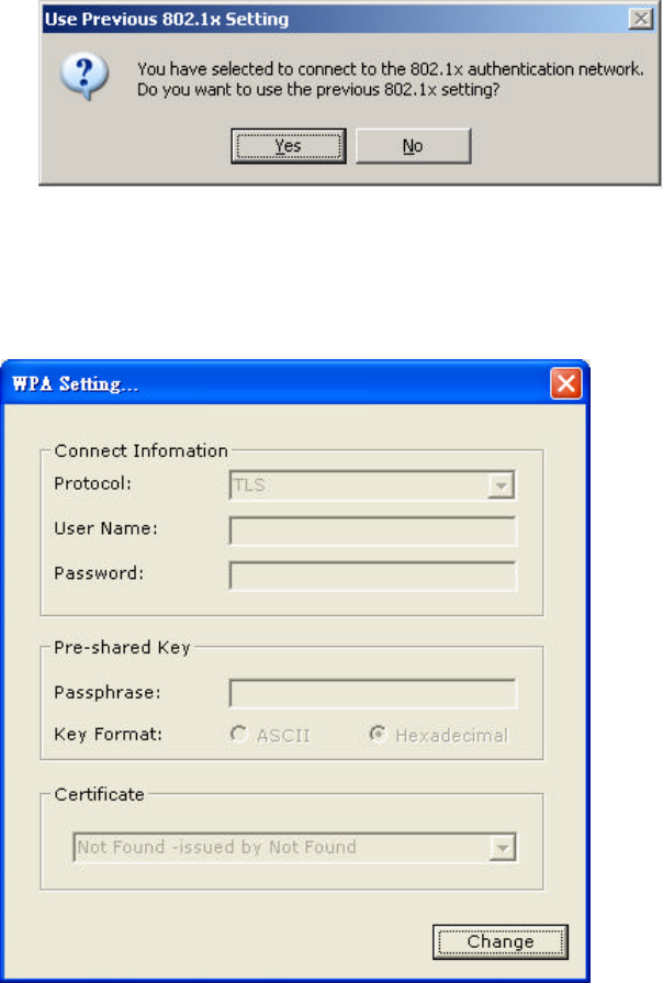 - Press the “Change” button to modify the contents of “WPA setting”, when