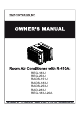 Owner’s Manual Heat Controller, Inc. Room Air Conditioner with R-410A ! CAUTION Do not allow to Do not clean thewater air conditioner withthe water. enter inside unit :KHQ WKH DLU ¿OWHU LV WR EH When the air filter is to be removed, donot nottouch touch the removed, do the metal parts metal partsofofthe theunit. unit It may cause an injury.