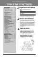 Safety Precautions Safety Precautions To prevent injury to the user or other people and property damage, the following instructions must be followed. ■ Incorrect operation due to ignoring instructions will cause harm or damage. The seriousness is classified by the following indications. This symbol indicates the possibility of death or serious injury. This symbol indicates the possibility of injury or damage. ■ Meanings of symbols used in this manual are as shown below. Be sure not to do.