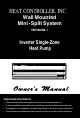 HEAT CONTROLLER, INC. Wall Mounted Mini - Split System VMH30SB-1 Inverter Single-Zone Heat Pump Important Information • Please read carefully and thoroughly this manual before operating this unit. • Contact a qualified sevice technician for installation, repair and maintenance of this unit. • The appliance is not intended for use by young children or those who require supervision. • Young children should be supervised to ensure that they do not play with the appliance.