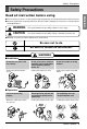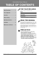 Safety Precautions Safety Precautions ■ To prevent injury to the user or other people and property damage, the following instructions must be followed. ■ Incorrect operation due to ignoring instructions will cause harm or damage; the seriousness is classified by the following indications. WARNING This symbol indicates the possibility of death or serious injury. CAUTION This symbol indicates the possibility of injury or damage to property only.