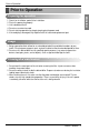 Prior to Operation Prior to Operation 1. Consult an installation specialist for installation. 2. Plug in the power plug properly. 3. Use a dedicated circuit. 4. Do not use an extension cord. 5. Do not start/stop operation by plugging/unplugging the power cord. 6. If the cord/plug is damaged, only replace it with an authorized replacement part. Usage 1. Being exposed to direct airflow for an extended period of time could be hazardous to your health.