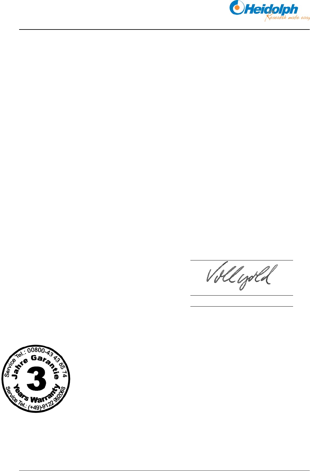 La société Heidolph Instruments vous accorde une garantie de 3 ans sur les