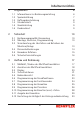 Inhaltsverzeichnis 1 Allgemeines 1.1 1.2 1.3 1.4 1.5 1.6 2 Informationen zur Bedienungsanleitung Symbolerklärung Haftungsbeschränkung Urheberschutz Gewährleistung Kundendienst Sicherheit 2.1 2.2 2.3 2.4 2.5 2.6 3 6 10 Bestimmungsgemäße Verwendung Montage, Anschluss, Programmierung Verantwortung des Herstellers und Betreibers der Maschine/Anlage Personalanforderungen Besondere Gefahren Sicherheitseinrichtungen Aufbau und Bedienung 3.1 3.2 3.3 3.4 3.5 3.6 3.7 3.8 3.9 3.10 3.11 3.