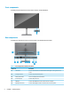 Front components To identify the power button on the front of the monitor, use this illustration. Rear components To identify the components on the rear of the monitor, use this illustration and table. Table 1-2 Rear components and their descriptions Component 4 Description (1) OSD control Activates the OSD buttons so that the button labels appear on the right side of the screen. (2) Security cable slot Connects an optional security cable.