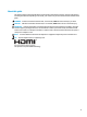 ● 4. Connect one end of an HDMI cable to the HDMI port on the rear of the monitor and the other end to the HDMI port on the source device. Connect a USB cable. ● Connect one end of a USB Type-A to USB Type-B cable to the USB Type-B port on the rear of the monitor and the other end to a USB port on the source device. NOTE: You must connect a USB Type-B cable from the source device (computer or laptop) to the rear of the monitor to enable the USB Type-A ports on the monitor.