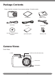 Package Contents Please check the contents of your camera package. It should contain: Digital camera Li-ion battery Battery charger Wrist strap USB cable Power cord User Manual and Software installation Quick Start guide Warranty card Camera Views Front View 1. Flash 2. Self-tmer LED /AF Assist Lamp 3. Zoom Lens 4.