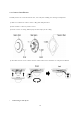 2.1 Camera Installation Carefully remove the contents from the box, and verity that nothing was damaged in shipment. 1) Make screw holes for camera on the ceiling with Template Sheet 2) Disassemble a camera by Camera Cover 3) Fix the camera set using Anchors(2x) and Screws(2x) to the ceiling. 4) Assemble Camera Cover to Dome Camera.