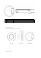 NO 1 2 3 Name Alarm Cable Power Cable Ethernet Cable Description Yellow : Alarm input, Black : GND, Blue : Alarm output Cable for Power source (DC 12V) Cable for Ethernet (POE) Camera Dimension See the diagrams below for the exact dimension Dimensions Unit: mm 2.
