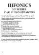HIFONICS HF SERIES CAR AUDIO SPEAKERS Congratulations on your purchase of the new HF Series speaker system. The HF speaker series offers superior sonic accuracy, intense high power sound quality with exotic build materials and outstanding good looks.