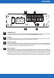 ENGLISH AMPLIFIER ACTIVATES THE PROTECTIVE CIRCUIT / THE PROTECT LED LIGHTS UP Check the following steps: Short circuit on the speaker cables • First disconnect all speaker cables from the amplifier. Use a multimeter to check the ohmic impedance of each loudspeaker by measuring between its plus and minus lines. With standard loudspeakers the value fluctuates between 3 and 5 ohms. The values for low-resistance subwoofers can be lower. • The measurement shows a resistance value of less than 0.