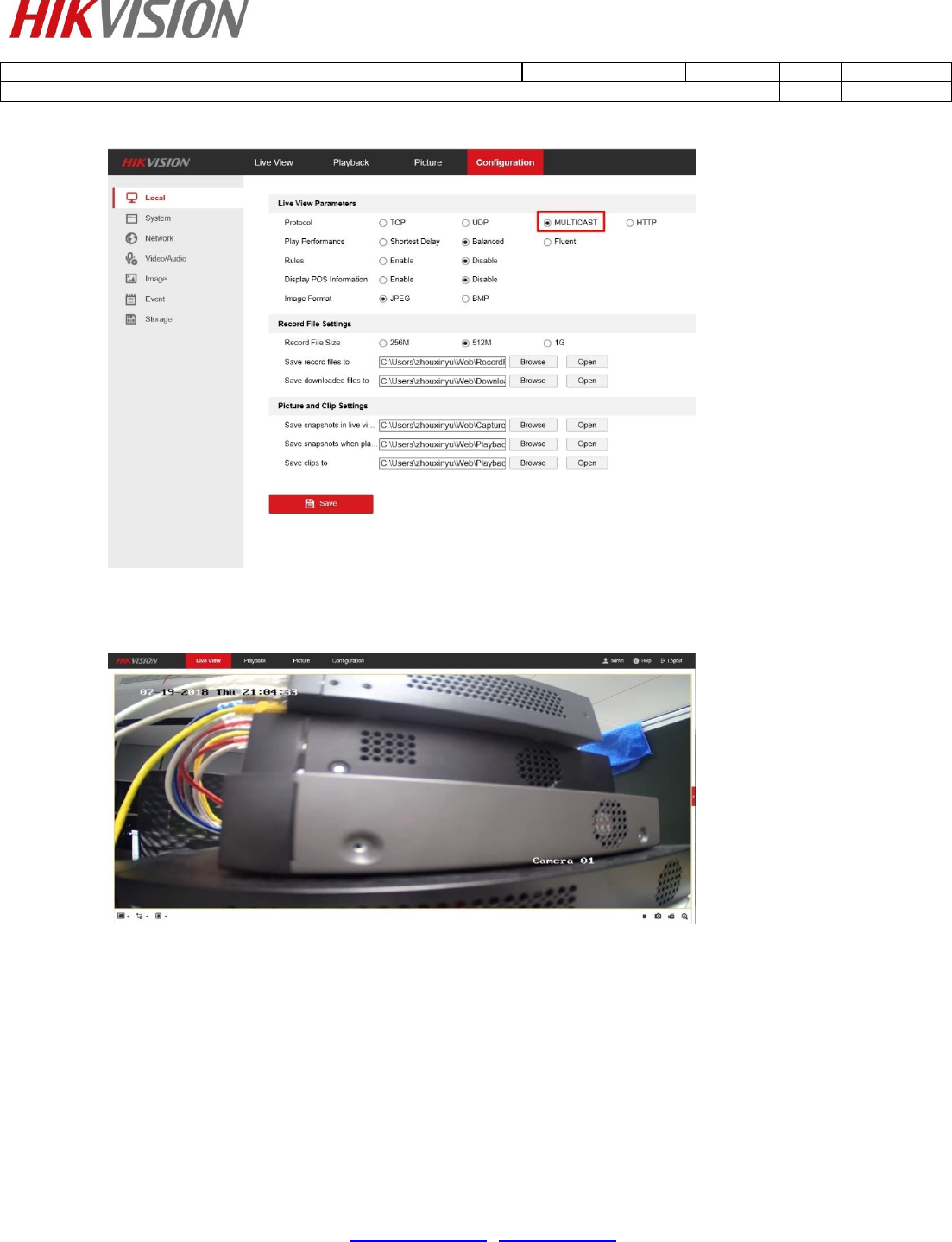 Go to [Local]-[Live View Parameters] and select MULTICAST as live view protocol