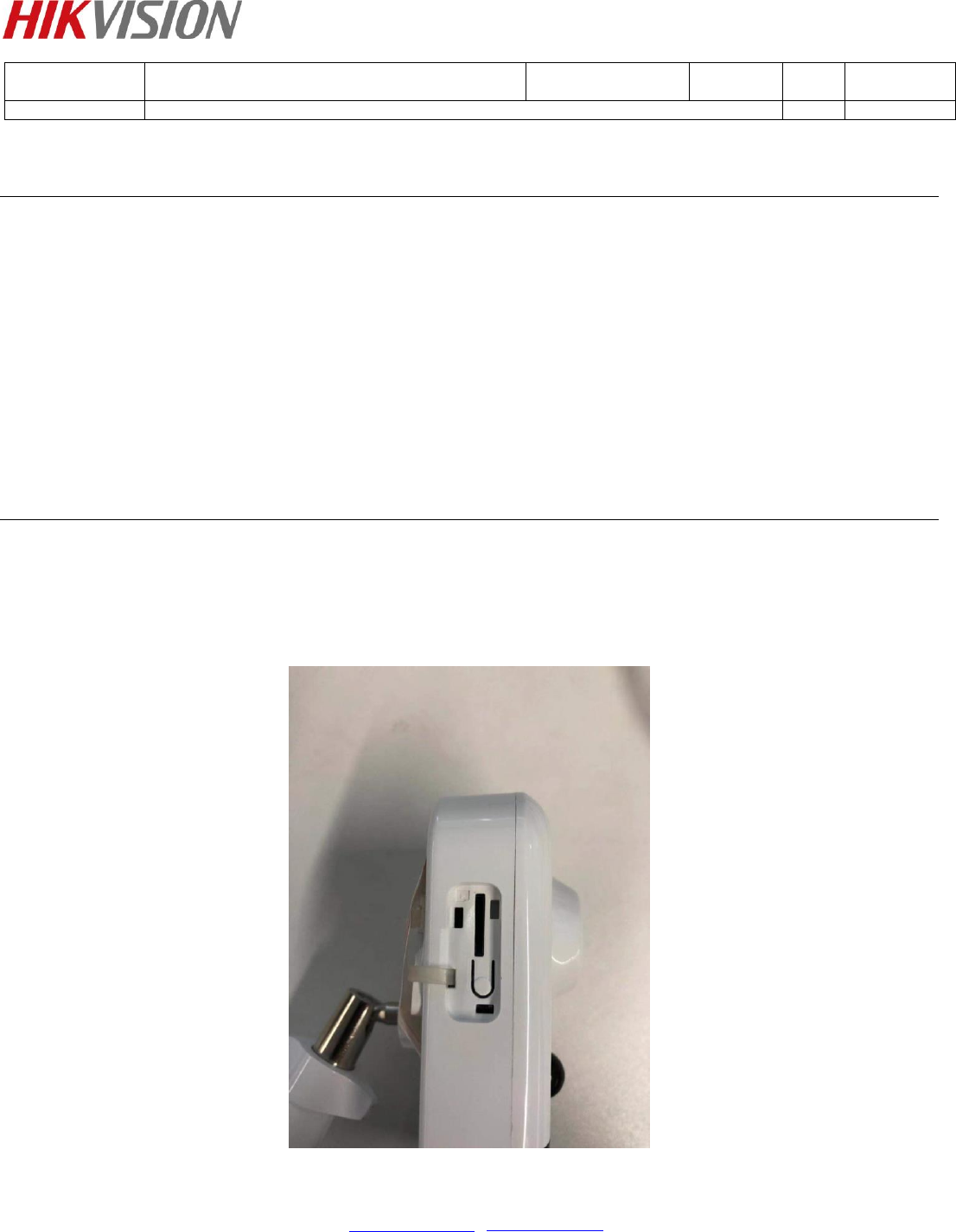 Title: How to set motion detection recording in SD card for HIKVISION IP camera Cameras Product: Version: v1.0 Date: 12/13/2018 Page: 1 of 8 Preparation 1. 2. SD card under 128GB. Camera supports On-board storage. How to set motion detection recording in SD card for HIKVISION IP camera 1. Install the SD card in camera. © Hangzhou Hikvision Digital Technology Co.,Ltd. All Rights Reserved. No.
