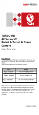 TURBO HD 4K Series VF Bullet & Turret & Dome Camera User Manual User Manual Thank you for purchasing our product. If there are any questions, or requests, do not hesitate to contact the dealer. This manual applies to the models below: Type Model Type I Camera DS-2CE19U8T-(A)IT3Z Type II Camera DS-2CE79U8T-IT3Z Type III Camera DS-2CE59U8T-(A)VPIT3Z This manual may contain technical incorrect places or printing errors, and the content is subject to change without notice.