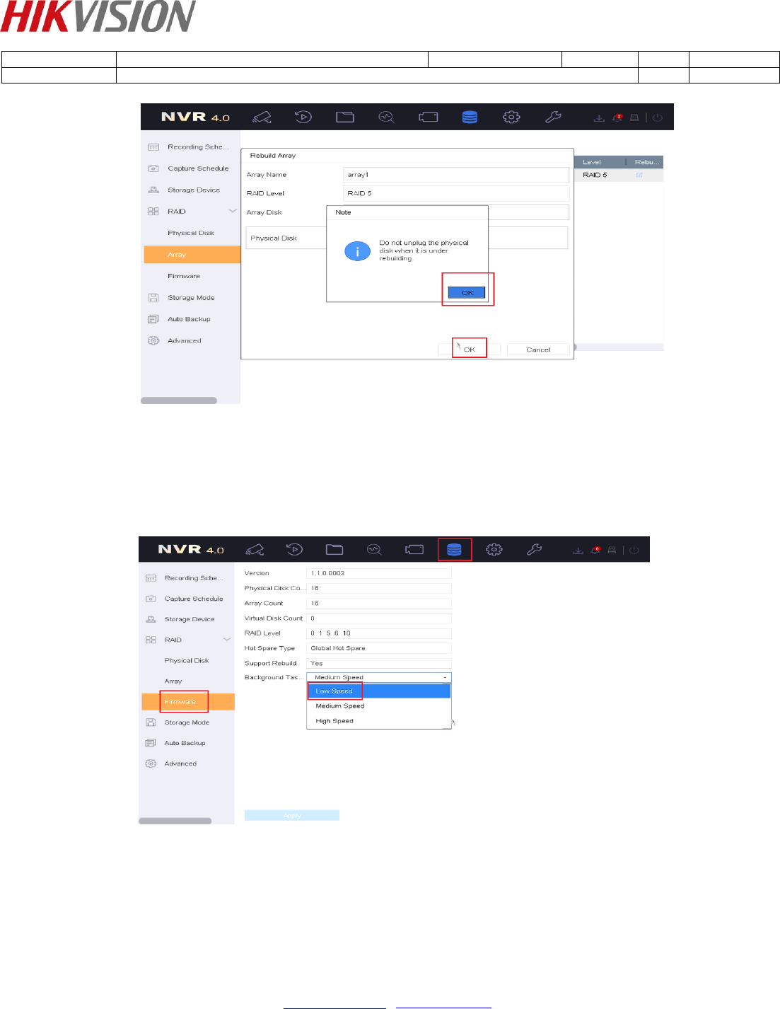 1. The rebuild speed is Middle Speed in default. If the operation of local GUI is not fluent, you can change the