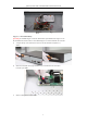 Quick Operation Guide of DS-9600/8600/7700/7600 Series NVR 5. Plaats de kap van de NVR terug en draai de schroeven vast. Stappen (voor DS-7600NI-ST/SP en DS-7700NI-ST/SP): 1. Verwijder de kap van de NVR door de schroeven van het achter- en zijpaneel los te draaien. 2. Sluit het ene uiteinde van de gegevenskabel aan op het moederbord van de NVR, en het andere op de HDD. 3. Sluit de voedingskabel aan op de HDD. 4.