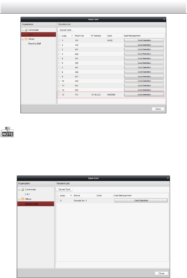After issuing resident cards to the indoor station, the card No. will also be listed in the