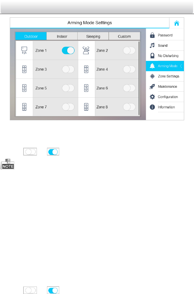 arming mode, the indoor station will still alarm when it is triggered.
