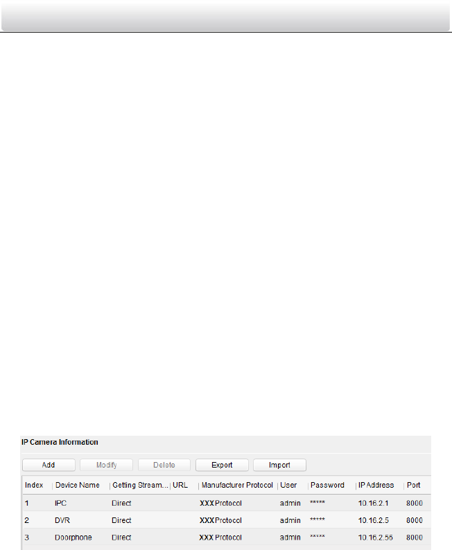 1. Click the IP Camera Information button to enter IP camera information interface.