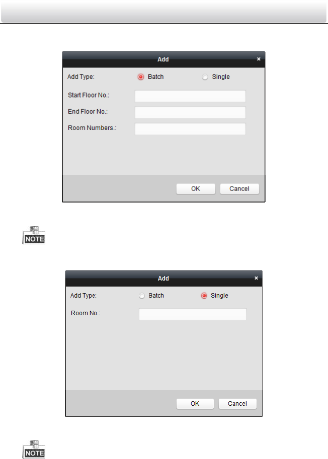 Adding Devices in Batch: Enter the start floor and end floor, and set the room
