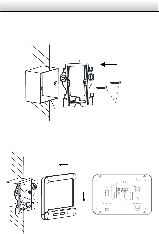4. Hook the indoor station to the wall mounting plate tightly by inserting the plate hooks
