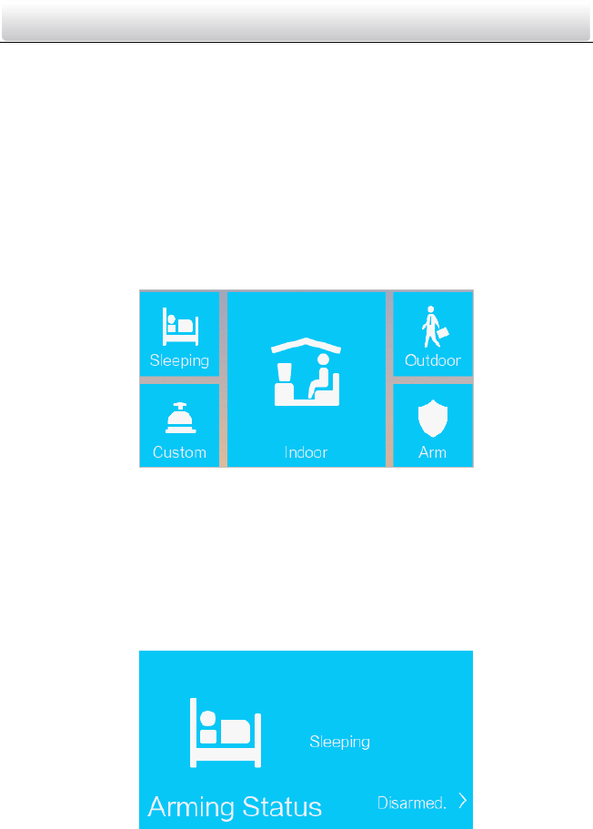 Example: After setting the arming status, press the Sleeping tab, and enter the arm