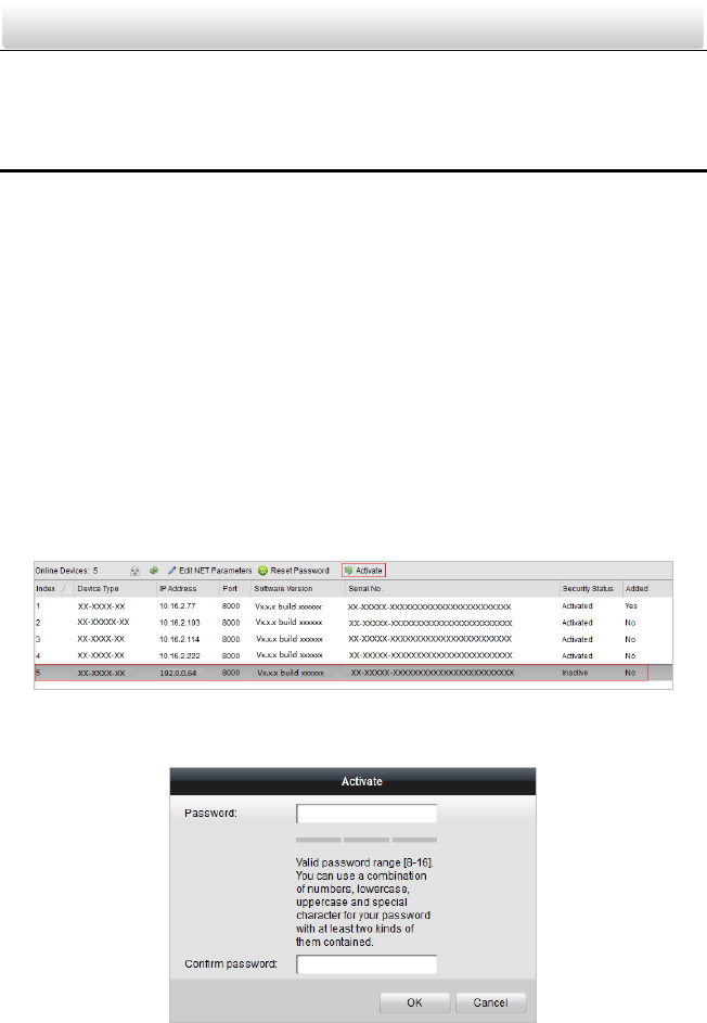 activation. Please refer to the user manual for the activation via iVMS-4200.