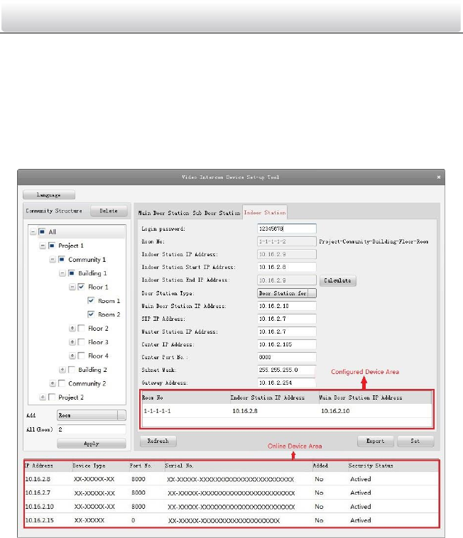 2. Select a community, and enter the indoor station start IP address, and then click the