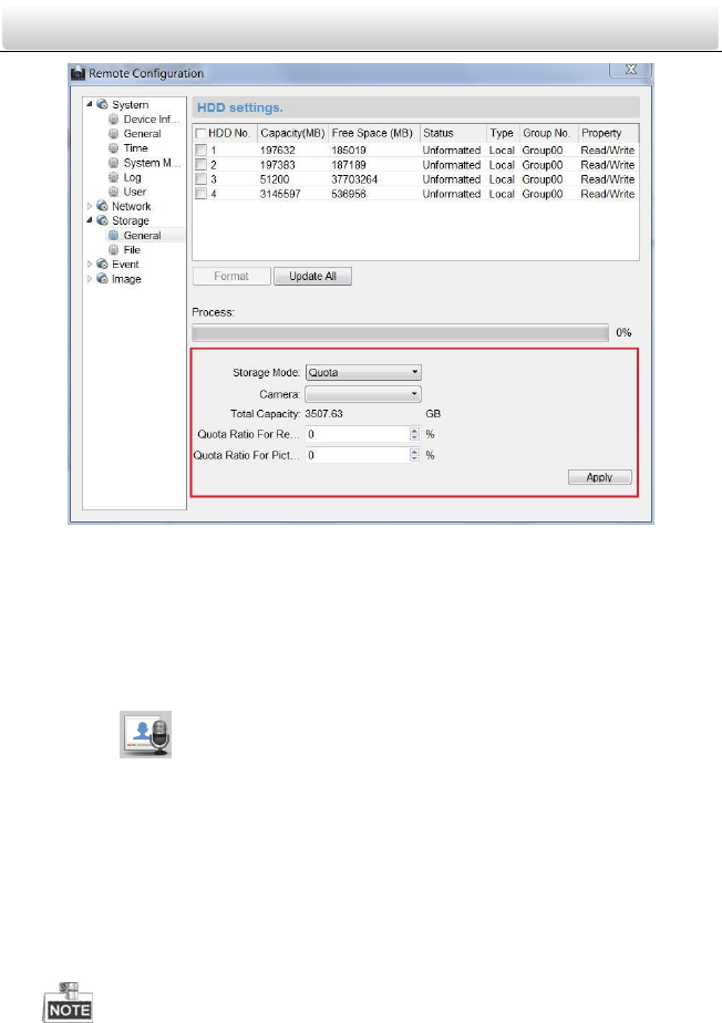 Example: If you set the picture quota as 60%, then the 60% of the storage space