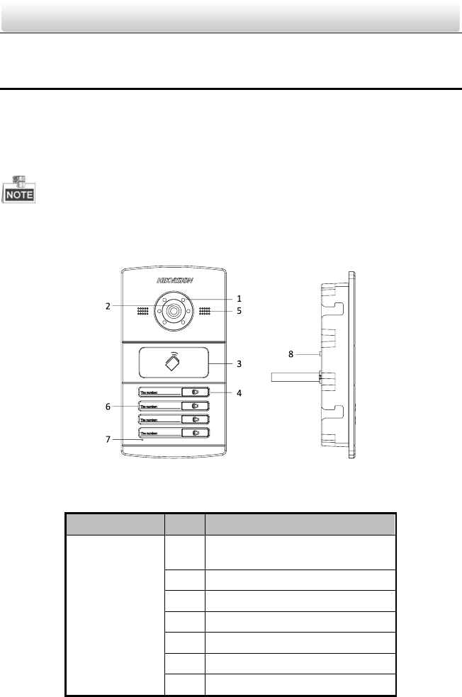For device DS-KV8X02-IM, the number of call buttons varies according to its model. Take