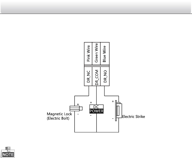 terminal DR_NO/DR_COM is set as default for connecting electric strike.