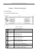 Network Video Recorder Quick Start Guide Table 1-7 Panel Description No. Name Function Description POWER Turns red when the power is connected but the system is not running; turns blue when the power is connected and the system is running. ALARM Solid red indicates alarm occurs. Tx/Rx Flickers blue when network connection is functioning properly. Solid red: At least one HDD is installed. 1 HDD Unlit: No HDD is detected. Flashing red: HDD is reading/writing.
