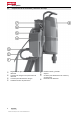 3 Descripción 3.1 Componentes de la herramienta y elementos de manejo @ ; = % 6 Regulación de agua en la perforadora de diamante Conexión de manguera a la perforadora de diamante Conexión para alimentación de agua Unidad de avance de perforación Español Printed: 22.05.